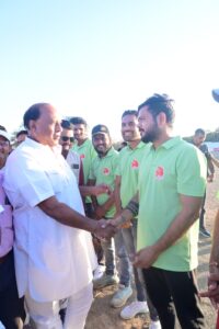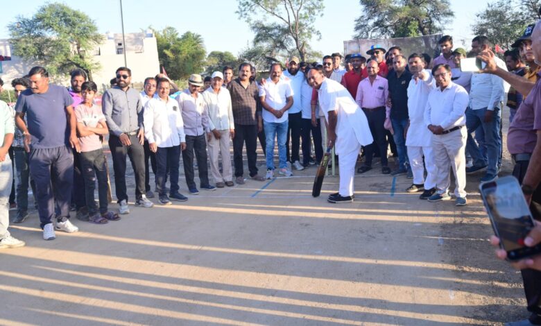 सैकडो क्रिकेट प्रेमियों की मौजूदगी में विधायक भंवरसिंह शेखावत ने क्रिकेट के महासमर की शुरुआत पहली बाल खेलकर की